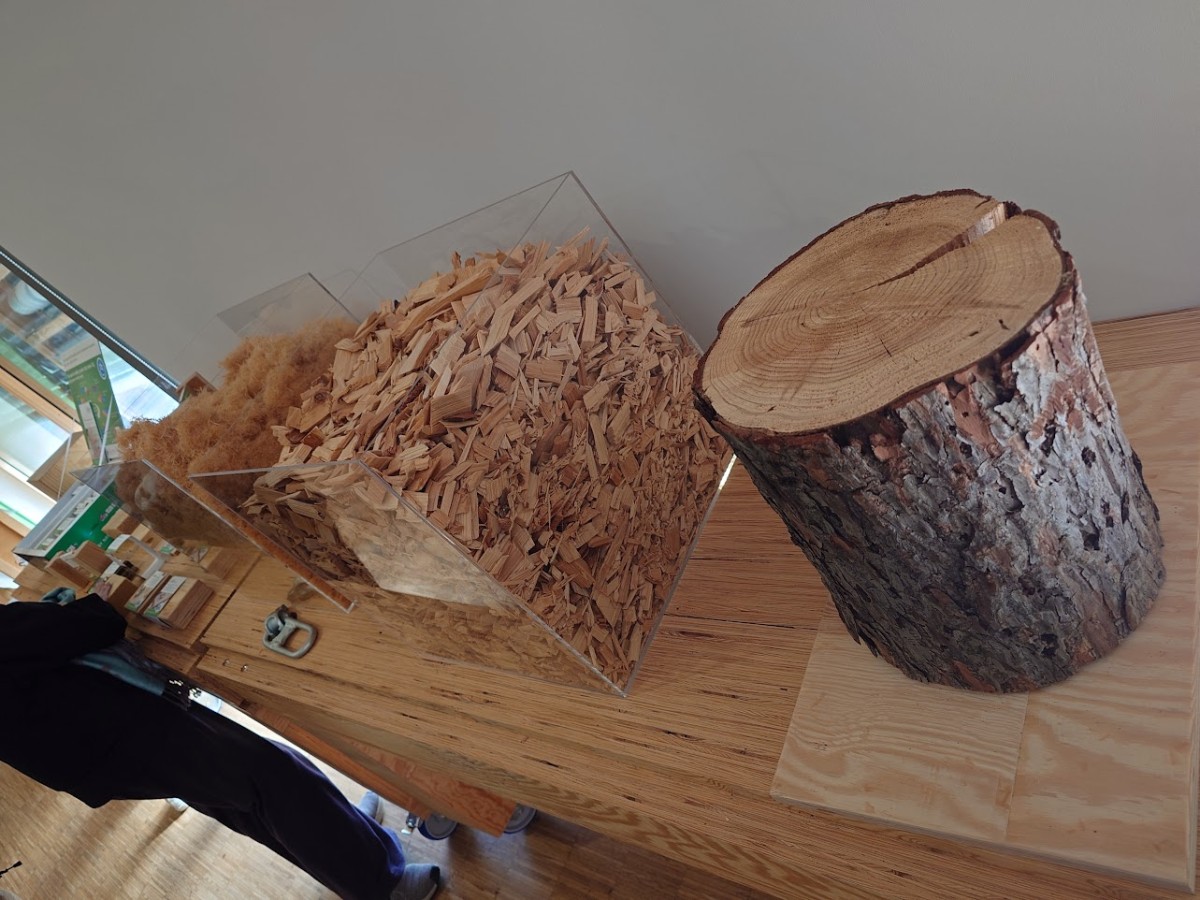 昼食後は、オフィス見学とウッドファイバーのブローイング実演を見学