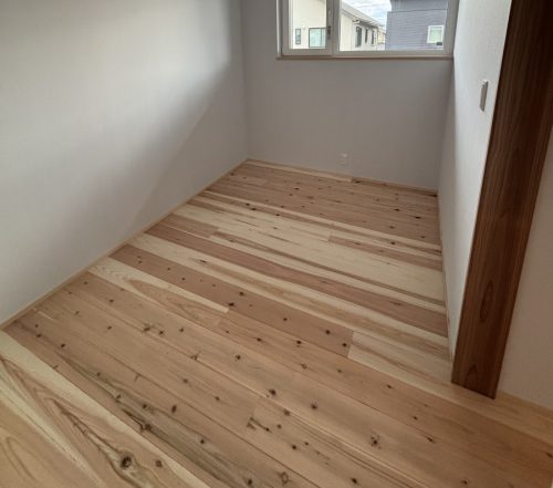 デメリット:杉に比べると硬いため足触りはしっかりしている。