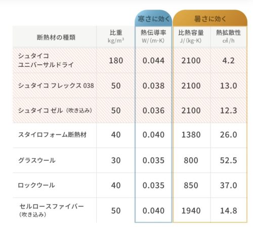 繊維系の断熱材の熱伝導率とそこまで大きく変わりませんが