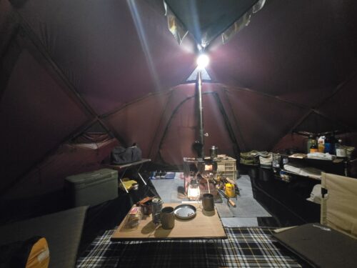 薪ストーブと足元に仕込んだ銀マットのおかげで寒さ知らずでした