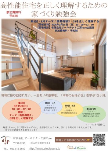 高性能住宅を正しく理解するための家づくり勉強会を開催いたします!|2026年3月15日 日曜日 10:00~12:00